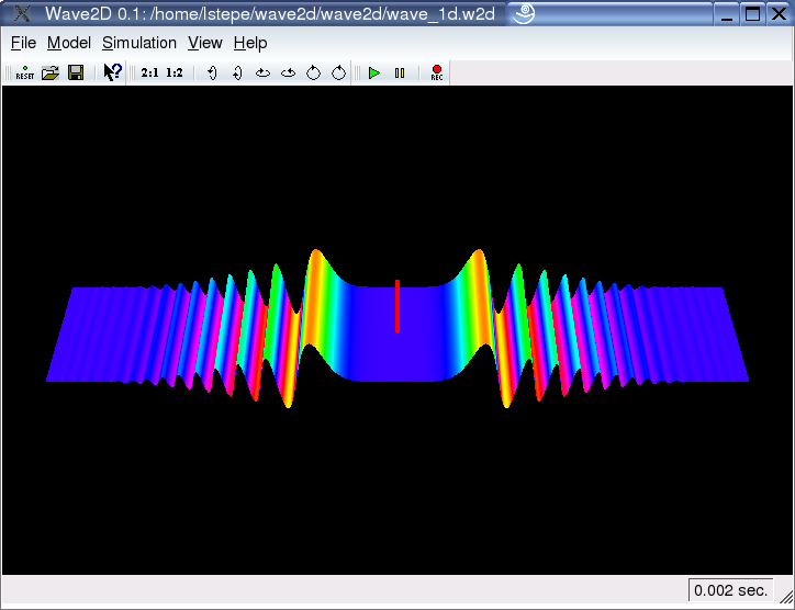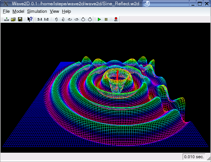 "Wave2D" visualizes the amplitude of the 2D wave field by both, deflection in the third dimension and color. Concerning the color, the user can adjust a number of properties.